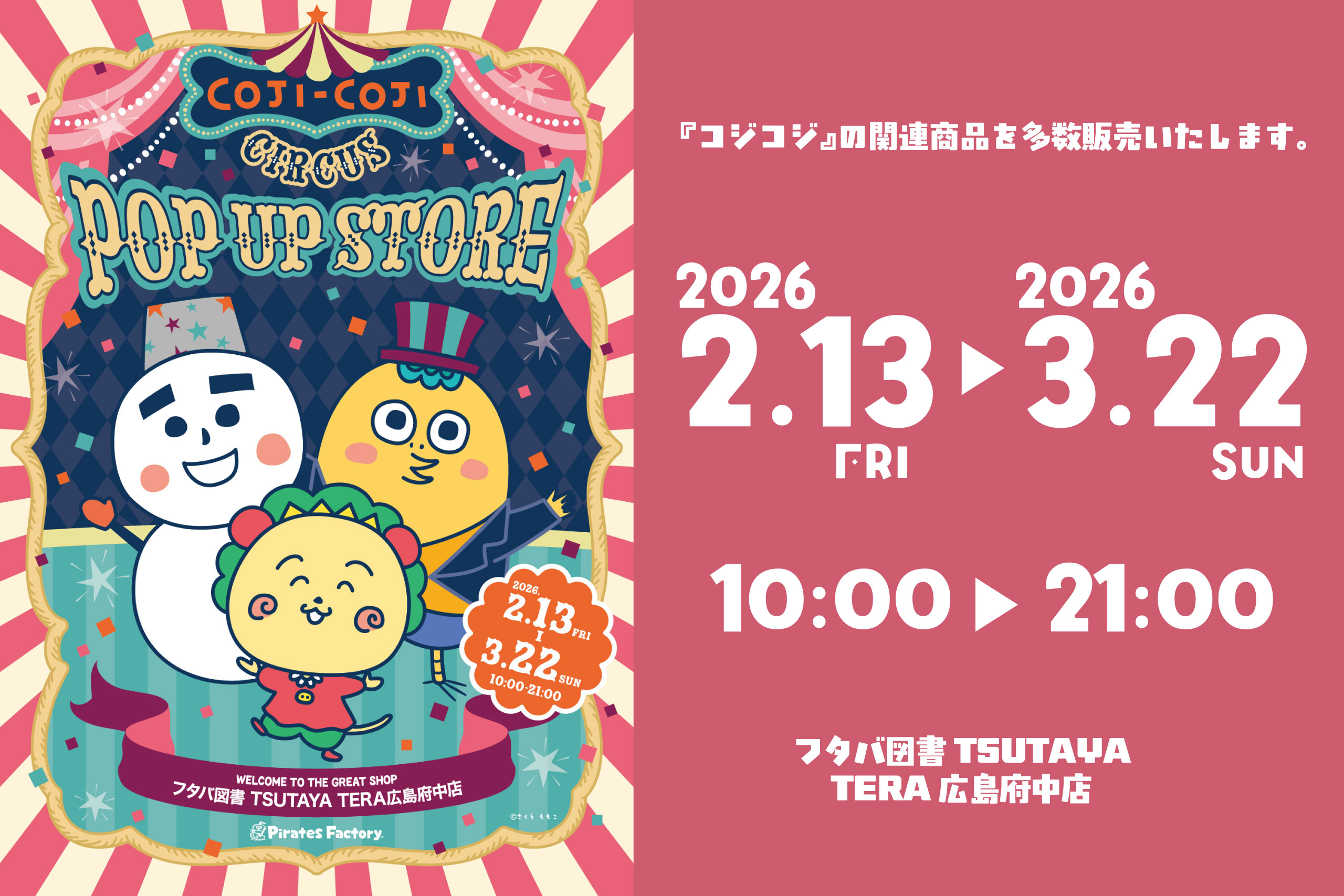 2/13-3/22【TERA広島府中店】コジコジサーカス POP UP STORE開催中
