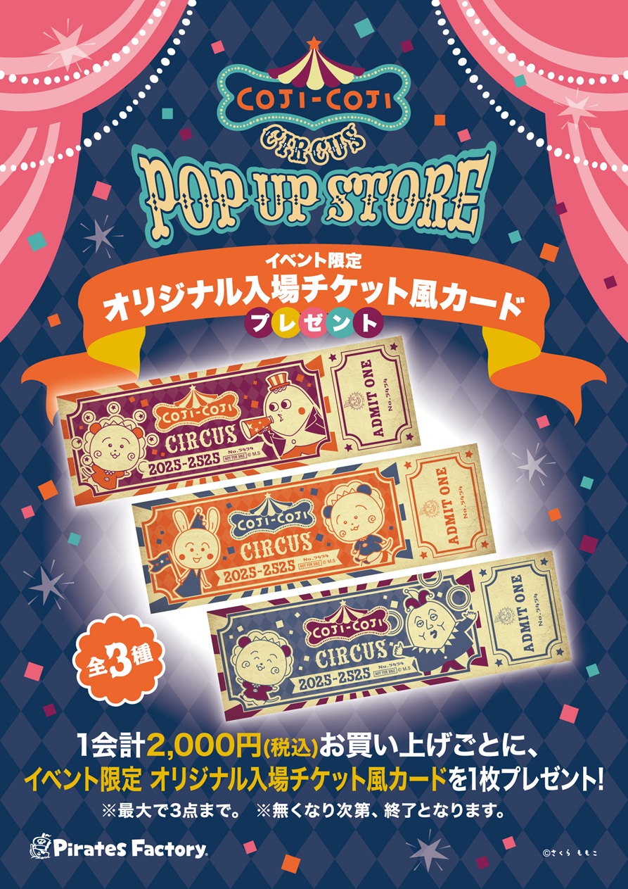 フタバ図書 TSUTAYA TERA 広島府中店にて「コジコジサーカス POP UP STORE」開催中 『コジコジ』の関連商品を多数販売 イオンモール広島府中にお立ち寄りの際に、ぜひご来店下さい。 会計2,000円(税込)以上ご購入ごとにランダムで1枚「コジコジサーカス入場チケット風カード」をプレゼント ※おひとり様最大で3点まで。 ※なくなり次第終了となります。 期間:2/13(金)~3/22(日) 会場:フタバ図書TSUTAYA TERA広島府中店 営業時間:10:00〜21:00 店舗問合せ先:082-561-0770