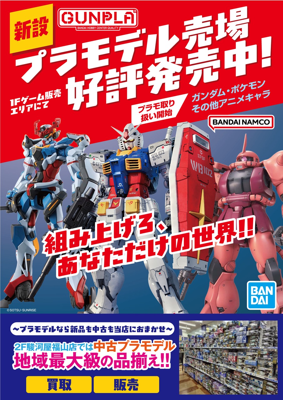 11/22 1階にプラモデル売場オープン。2階の駿河屋の中古プラモデル売場と併せてご利用ください